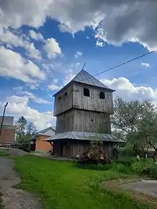Бабинець, вівтар і ризниця вкриті двосхилими дахами, нава – чотирисхилим. Гребені основних об’ємів церкви (крім ризниці) вінчають на восьмибічних основах високі ліхтарі зі шпилями. Подібне завершення є на гребені даху ризниці, правда всередині там помістили маленький дзвін. На захід від церкви збереглася дерев’яна триярусна дзвіниця з підбиттям в третьому ярусі, вкрита пірамідальним дахом.