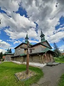 Дубовий хрест біля церкви