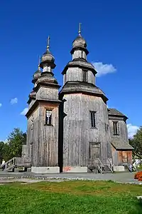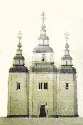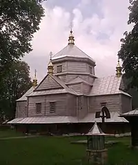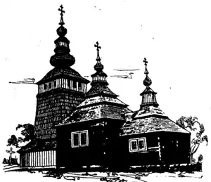 Більшість дерев'яних храмів України, збудованих до XIX ст., є тридільними, рідше п'ятитидільними. За формою здебільшого нагадують тризуб: три приділи рядком один за одним, по центру найвища баня. Цим українська народна сакральна архітектура відрізняється від «московського» стилю архітектури, де нижня частина храму виглядає як неподільна чотирикутна споруда-куб, а нагорі в неї може бути кілька бань.[8][9]