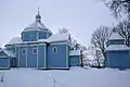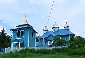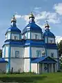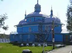 - Тридільний однобанний храм зображено на гербі міста Бровари Київської області.