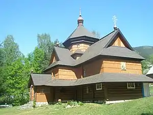 Основою лемківської церкви є три прямокутні зруби, тобто святилище, нава та бабинець. Нава завжди була найбільшою. Під впливом стилю бароко, нава набула форми восьмикутника. Святилище та нава перекривали балками та зверху покривали — ломаним дахом-наметом. Найхарактернішою рисою лемківської церкви є вежа замість бабинця . Вона стовпової конструкції, з нависною кімнатою над входом та перекрита окремою куполою. Вся церква оббита дошками та покрита гонтом. Інколи на лемківсько-бойківському кордоні були однонавні невеликі церкви, на даху яких знаходилися невеликі вежички або маківки, які символізували тридільність української церкви. Тридільні, на три зруби церкви під одним дахом та з трьома маківками — типова риса бойківської архітектури. Матеріалом для побудови лемківської церкви була ялиця та сосна, рідше бук або модрина і ще рідше дуб або осика. Лемківські церкви з вищими вежами характерні тільки для західної та середньої Лемківщини, а для долини Ослави (Команча та ін. села) характерні церкви без вежі та з низькими чоритиспадовими дахами і з трьома копулями та ліхтарнями на них.