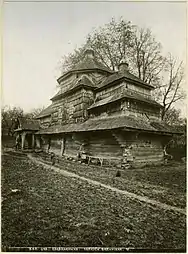 Історія дерев'яних церков мало досліджена, нею цікавляться здебільшого архітектори, а не історики. Точний період виникнення дерев'яних храмів на території України не відомий. Найімовірніше, що дерев'яні храми існували ще до християнства на території України як язичницькі святилища. Такі святилища існували в Карпатах, де місцеві майстри обробляли деревину смереки і будували з неї домівки та храми. Існує гіпотеза, що для язичницьких жерців храми слугували також і астрономічними обсерваторіями, через що й будували їх завжди на найвищому місці.[1]