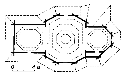4. Дев'ятизрубна будівля — це також рідкий тип найбільш розвиненої форми української дерев'яної церкви. Таку хрещату будівлю утворювали додаванням до п'ятизрубної будови в чотирьох її кутах ще по одному зрубові. Прикладом такої будівлі з дев'ятьма вежами є запорозька церква в Самарі (1772-79 рр.)