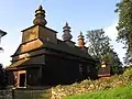 Квадратні зруби церкви при куполі зазвичай переходять у восьмикутну форму. Куполи у церквах можуть мати кілька заломів. Найбільше заломів зустрічається у бойківських церквах. Церкви переважно покривають дерев'яним гонтом, що забезпечує забезпечує церкві теплозбереження та надає автентичності екстер'єру споруди. Покриття замінюють кожних 30-40 років для запобігання гниття та цвітіння деревини.