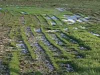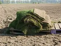 Вирізана з шару дерну пласт (скиба, плитка або шматок) землі[5] має назву дерни́на[6].