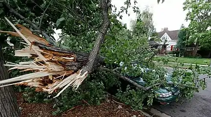 Деречо також може серйозно пошкодити систему розподілу електроенергії в міській місцевості, особливо якщо ці служби проходять над землею. Деречо, що обрушилося на Чикаго, штат Іллінойс, 11 липня 2011 року, залишило без електрики понад 860 000 людей. У червні 2012 року північноамериканське деречо відключило електроенергію більш ніж 3,7 мільйонам споживачів, починаючи з Середнього Заходу Сполучених Штатів, через центральні Аппалачі і закінчуючи середньо-атлантичними штатами.