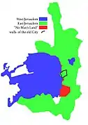 | Ця лінія адміністративного кордону між Йорданією та територією, під ізраїльським військовим державним контролем з 1967. Будь-яке проведення розмежувальної лінії не є перешкодою для статусу цієї території. |