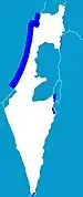 Ізраїль на заході омивається водами Середземного моря Атлантичного океану, на півдні має вихід до вод Червоного моря Індійського океану (Акабська затока)[2]. Загальна довжина морського узбережжя 273 км[1]. Згідно з Конвенцією Організації Об'єднаних Націй з морського права (UNCLOS) 1982 року, протяжність територіальних вод країни встановлено в 12 морських миль (22,2 км)[11]. Континентальний шельф — до глибин придатних до експлуатації[12][1].