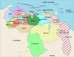 На сході Венесуела має територіальні претензії до Гаяни, так звана Венесуельська Гвіана. Ці території мали неврегульований статус ще за часів британського панування в південноамериканській колонії Британська Гвіана.