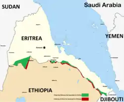 До проголошення Еритреєю незалежності й подальшої війни 1991 року, Ефіопія мала вихід до Червоного моря. 1998-2000 року тривала Ефіопсько-еритрейська прикордонна війна. 2007 року Міжнародний суд вирішив суперечку двох країн й розподілив між ними спірні території.