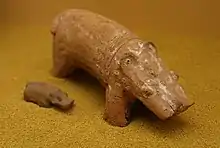 - численні зображення фараона Аменемхета III, культове зображення бога-крокодила Собека, фаянсовий гіпопотам зі стилізованими водними рослинами, фігура Сенурсета III як сфінкса, статуя високопосадовця