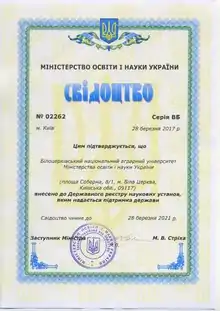 При Міністерстві освіти України створена Державна комісія з питань Державного реєстру наукових установ, яким надається підтримка держави.[4]. Міністерство визначило Порядок включення до Державного реєстру наукових установ, яким надається підтримка держави[5].