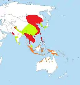 Птах поширений в Південній та Східній Азії. Ареал виду лежить від Північного Пакистану на заході та російського Забайкалля на півночі до Індонезії. Зимує у тропічній Азії, Новій Гвінеї, Австралії, Новій Зеландії та деяких островах Океанії (Палау, Соломонові острови, Вануату, Нова Каледонія). Залітні птахи спостерігалися в Європі, Африці та на Алясці.