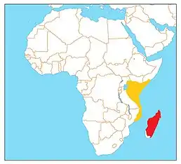 Вид поширений на Мадагаскарі. Гніздовий ареал лежить майже на всій території острова, крім південно-західної частини. У позашлюбний період (травень-серпень) птах мігрує до Східної Африки, де він знаходиться вздовж узбережжя між Сомалі та Мозамбіком. Мешкає у субтропічних або тропічних вологих або затоплюваних низовинних пасовищах, долинах річок, вздовж прісноводних озер, на болотах.
