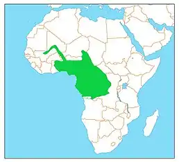 Вид досить поширений в Західній та Центральній Африці. Трапляється вздовж великих річок і узбережжя від Малі та Нігеру до Гани, Камеруну, крайнього півдня Чаду, на заході Демократичної Республіки Конго та північному заході Анголи.