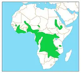 Птах поширений в країнах Субсахарської Африки. Живе на відкритих територяіх з виходами скель та неподалік водойм.