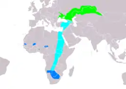 ![]() Ареал поширення виду зимування шляхи міграції зимування | ||||||||||||||||