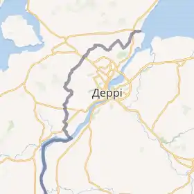 Історично Деррі виник як монастирський центр, потім як порт і місто захищене мурами в гирлі річки Фойл, біля затоки Лох-Фойл. Перші споруди знаходилися на західному березі, зараз місто розташовується на обох берегах, з'єднаних двома мостами[2].
