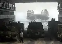 Розміри палуби були продиктовані розмірами чотирьох суден LCAC (при потребі перед палубою можна поставити ще п'ятого), які вперше у флоті застосували на даному класі кораблів. Крім них на палубі можна розмістити 3 LCU[3], 10 LCM-8, 21 LCM-6[4], до 64 AAV-P7.