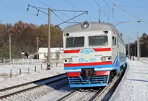 ![]() Електропоїзд ЕР9М-392 на зупинному пункті Десенка | |