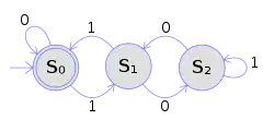 Стан S1 показує, що серед вхідних даних, наразі опрацьованих , трапилася парна кількість 0, тоді як S2 вказує на непарну кількість. 1 на вході не змінює стану автомата. Після завершення введення даних стан буде вказувати, чи трапилась парна кількість 0. Якщо так дійсно сталося, M опиниться в стані S1, що є допустимим станом, тож поданий на вхід рядок буде розпізнаний.