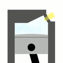 При стисканні поршнем паливо-повітряна суміш значно нагрівається (адіабатичне стискання), що й забезпечує легкість її займання електричним розрядом на свічці запалювання. При нормальній роботі свіжі шари паливо-повітряної суміші нагріваються фронтом реакції. Це відносно повільний процес, тому фронт спокійного горіння стаціонарної суміші поширюється не швидше ніж 0,2…0,3 м/с. У двигуні, що працює, суміш не є стаціонарною, вона дуже швидко і турбулентно переміщається зі швидкостями, що мають той же порядок величини, що й швидкості руху контактуючих деталей (поршнів, або їх аналогів). Тому, фронт горіння фактично поширюється від свічки до периферії зі швидкістю порядку від 30 до 60 м/с (дозвукова швидкість) і процес згоряння триває близько 0,001 с. При цьому, природно, підвищується температура (1500…2400 °C) і тиск (до 60 атм) в камері згоряння, але підвищуються рівномірно по всьому об'єму викликаючи при цьому рух поршня вниз.