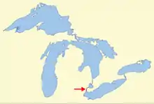 оз. Ері→ р. Ніагара→ оз. Онтаріо→ р. Св. Лаврентія→ затока Св. Лаврентія |