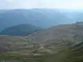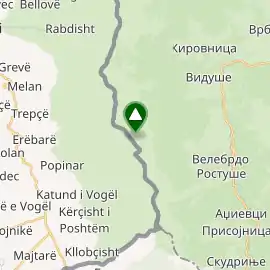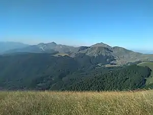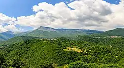 Вид із вершини Велівар на хребет і передгір’я гори Дешат з долиною річки Радика та Бігорським монастирем
