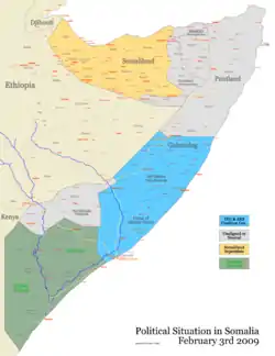 Після інавгурації нового президента політичний вплив в Сомалі змінився. З тих пір, центральну частину Сомалі контролює Союз ісламських судів, ісламські фундаменталісти — південну частину країни. Через це, на початку війни Аш-Шабааб перейшли в наступ, щоб розширити сферу впливу на північ країни, у лютому 2009 року захопили Бакул на кордоні з Ефіопією і штурмували столицю. У квітні 2009 року, незважаючи на прийняття законів шаріату в Сомалі новим урядом, Аш-Шабааб заявив, що він буде продовжувати війну навіть після виведення миротворчих військ AMISOM відряджених в Сомалі від імені Африканського союзу.