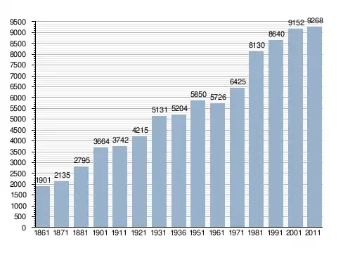 Станом на 31 грудня 2014 року в муніципалітеті офіційно проживало 613 іноземців з 49 країн, серед них 316 громадян країн Євросоюзу та 29 громадян України.[4]