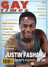 - Marshall, John (July 1991). Justin Fashanu: Soccer's enigmatic gay star. Gay Times (Millivres) (154).