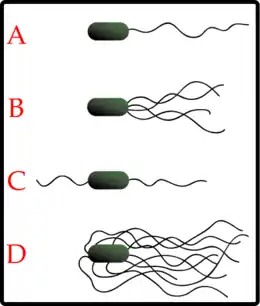 При полярному розташуванні джгутиків один з них може штовхати бактерію, а інший тянути і навпаки, залежно від напряму обертання.
