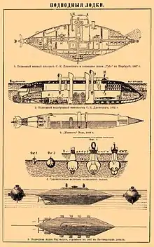 В 1907 році будується підводний човен «Почтовий» який має єдиний двигун для підводного й надводного ходу.