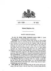 - Patent 913 A method of lessening the consumption of steam in steam engines-the separate condenser. The specification was accepted on 5 January 1769; enrolled on 29 April 1769, and extended to June 1800 by an act of Parliament in 1775.