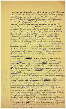 | ...давайте цього дня поставимо на підвіконня запалену свічку, щоб згадати мільйони розстріляних, померлих від голоду. Багато хто з них не встиг залишити на цій землі свого прямого продовження — синів та доньок. Палаючи у наших вікнах, вогники свічок стануть знаком того, що їх не забуто, що й вони мають нащадків, які їх пам'ятають. |