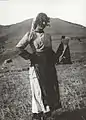 Жінка, розчісує шерсть на гребені, с. Джейрах 1921 р.