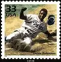 Дебют Робінсона в Головній лізі поклав край майже 60-річній бейсбольній сегрегації, також відомій як бейсбольний кольоровий бар'єр. Розпочавши бейсбольну кар'єру у 28-річному віці, Робінсон провів 10 сезонів, і всі у команді «Бруклін Доджерс»[120]. Впродовж кар'єри, його команда шість разів брала участь у Світових серіях, а сам Робінсон був учасником 6-ти Матчів всіх зірок[2]. 1999 року Робінсона включили до символічної Команди століття Головної бейсбольної ліги.