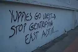 Термін джентрифікації, з'явившись у Британії в середині 1960-х років, став згодом вельми популярним у США й означає явище, протилежне субурбанізації. Джентрифікація може відбуватися згідно з програмою запланованого міського відновлення або в результаті зміни популярності району через зміни в структурі міста. При цьому в район направляються інвестиції, що йдуть на розвиток інфраструктури і кредити для придбання нерухомості[3]. Подібні дії з боку уряду зазвичай обумовлені зменшенням злочинності в таких районах та збільшення збору податків на нерухомість[4]. Проте джентрифікація може бути як корисною, так і шкідливою для існуючих мешканців району, в результаті вона часто пов'язана з акціями підтримки або протесту[5].