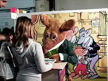 ![]() Маскот Джеронімо Стілтона на паризькому книжковому ярмарку | |