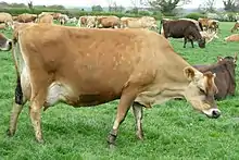 Джерсійська порода — порода великої рогатої худоби молочного напряму, одна з найбільш жирномолочних порід. Це давня порода корів, відома своїм жирним молоком. Виведена в Англії на острові Джерсі приблизно в кінці XVIII століття. Поширена джерсійська порода в Англії, США, Канаді, Австралії, Данії, Франції та інших країнах. В Україні худобу джерсейської породи схрещували з червоною степовою, симентальською, лебединською та іншими. Але чіткої спрямованості в селекції не було, і ця робота не набула значних масштабів.[1]