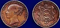 До 1834 валютою острова був лівр, який прирівнювався до фунта за курсом 26 лівр за фунт, і використовувалися французькі гроші. У 1834 у зв'язку зі скасуванням у Франції лівр ще в 1795 валютою був запроваджений фунт, хоча французькі мідні монети продовжували залишатися в обігу за курсом 26 су за 1 шилінг до 1924. У 1841 були введені пенси, 13 з яких складали шилінг, а в 1877 12 пенсів стали складати шилінг. У 1971 була прийнята десяткова система.