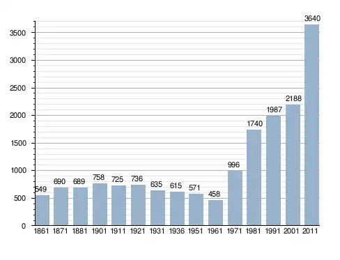 Станом на 31 грудня 2014 року в муніципалітеті офіційно проживало 97 іноземців з 22 країн, серед них 62 громадяни країн Євросоюзу та 2 громадяни України.[4]