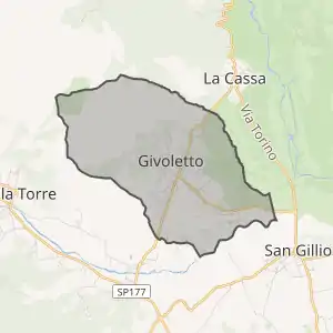 Дживолетто розташоване на відстані[1] близько 550 км на північний захід від Рима, 20 км на північний захід від Турина.