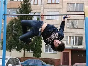 - Acrobacias (акробатика) - вправи з акробатики, а саме різні сальто, зіскоки з турніка та інші (mortal (лач гейнер,заднє сальто з турніка)[12], catapulta (переднє сальто з турніка), ginger[13], hoja (топорик з положення сидячи)).