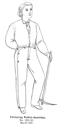 У 1873 році Леві Штраус і кравець із Невади Якоб Девіс офіційно патентують своє виробництво (патент № 139.121 від Бюро патентів і торговельних марок США на виробництво «робочих комбінезонів без бретелей з кишенями для ножа, грошей і годинника»).