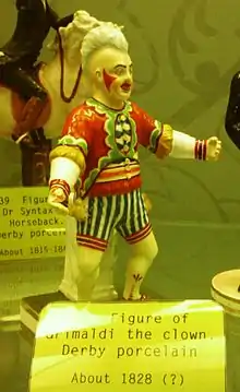 Джозеф Грімальді (англ. Joseph Grimaldi, 18 грудня 1778 — 31 травня 1837) — англійський актор, батько сучасної клоунади, один з найвідоміших клоунів Англії, що вважається першим клоуном з білим (європейським) обличчям[7]. Саме виступи Грімальді зробили Клоуна, як персонажа, центральною фігурою британських арлекінад.