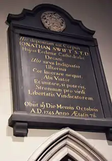Джонатан Свіфт (англ. Jonathan Swift; 30 листопада 1667, Дублін — 19 жовтня 1745, Дублін) — церковний діяч, публіцист, сатирик, англомовний ірландський письменник, відомий як автор «Мандрів Гулівера». Британська енциклопедія вважає його найвидатнішим англомовним прозаїком-сатириком усіх часів[5]. Менш відомий як поет.