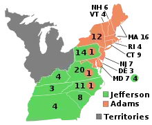 Джон Адамс переміг у північних штатах, Томас Джефферсон у південних. Адамс став другим президентом США 4 березня 1797.