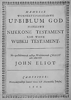 | Magnum opus | Mamusse Wunneetupantamwe Um Biblum Godd[8] |