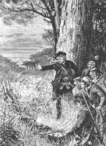 ![]() «Довготелесий» Джон Сільвер знаходить скелет Аллардайса (ілюстрація Джорджа Роукса, 1885) | |